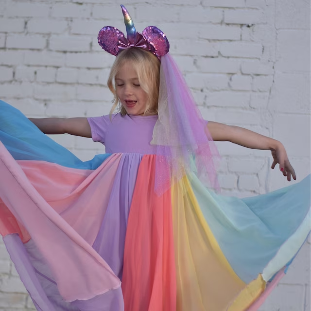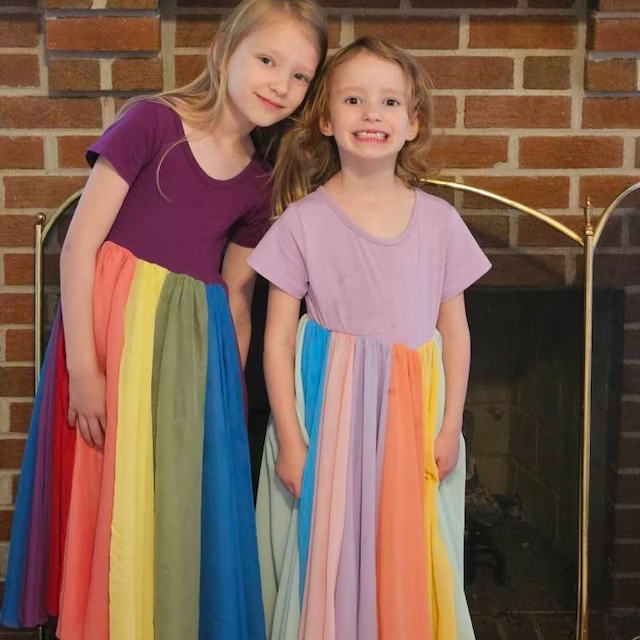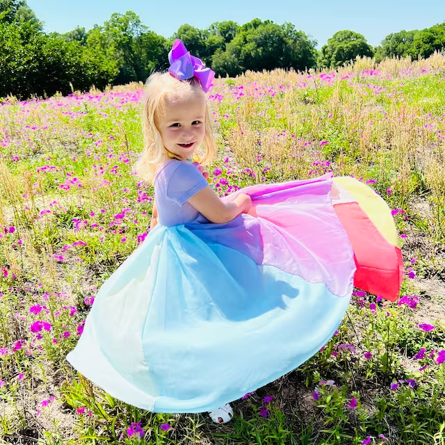 It is simple, but gorgeous and very classy. It is a full length gown, with a great amount of volume, but still comfortable to move and walk around in. Can be custom made in any color and up to size 6 years.