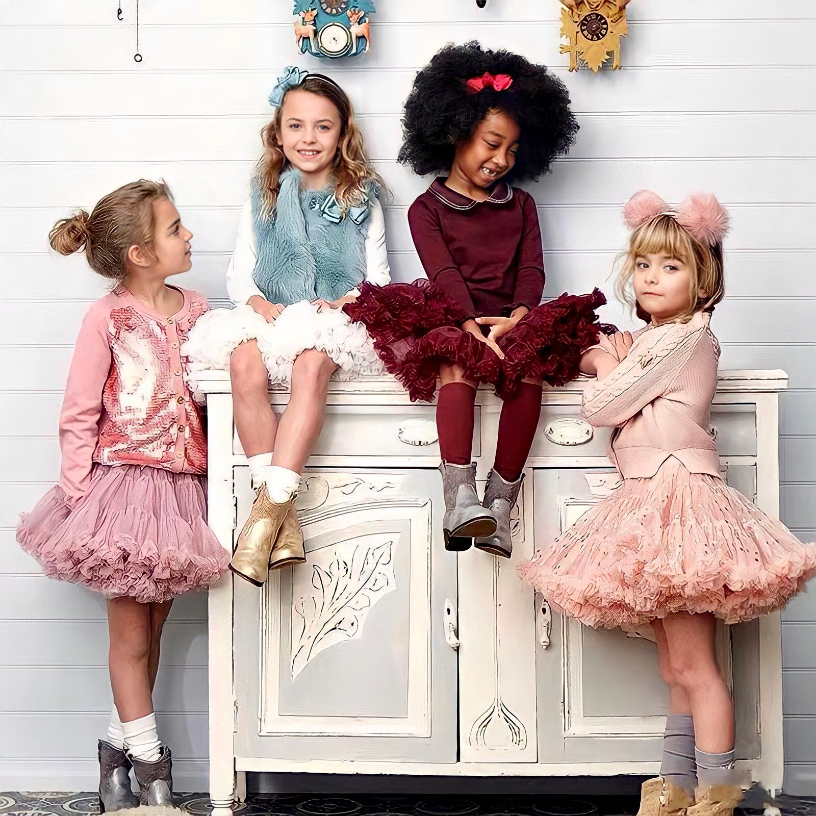 Much Tulle Used in the Hem of the Tutu Skirt Which Make The Skirt Full Fluffy as same as Photos Showing And 1 Layer of Satin Lining Inside Which is Soft for the Skin of Little Toddler Girls.