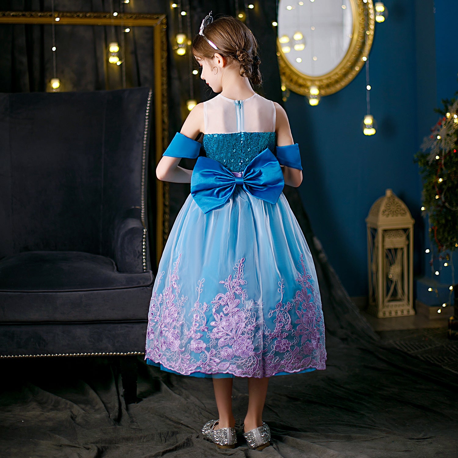 It is simple, but gorgeous and very classy. It is a full length gown, with a great amount of volume, but still comfortable to move and walk around in. Can be custom made in any color and up to size 10 years.