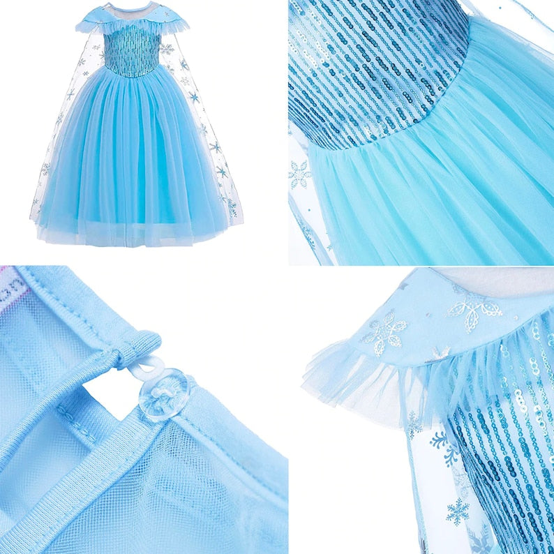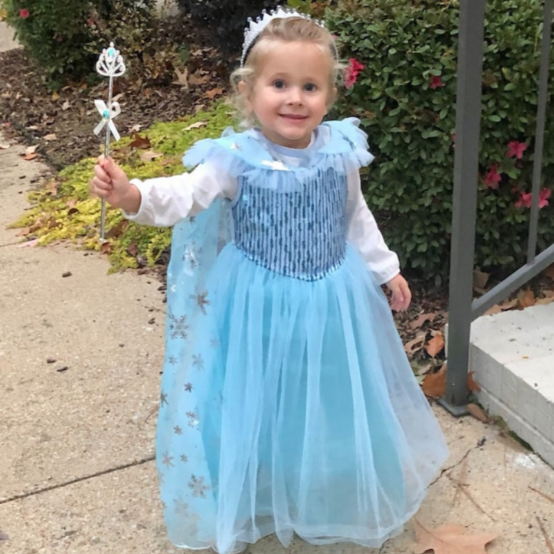 It is simple, but gorgeous and very classy. It is a full length gown, with a great amount of volume, but still comfortable to move and walk around in. Can be custom made in any color and up to size 8 years.