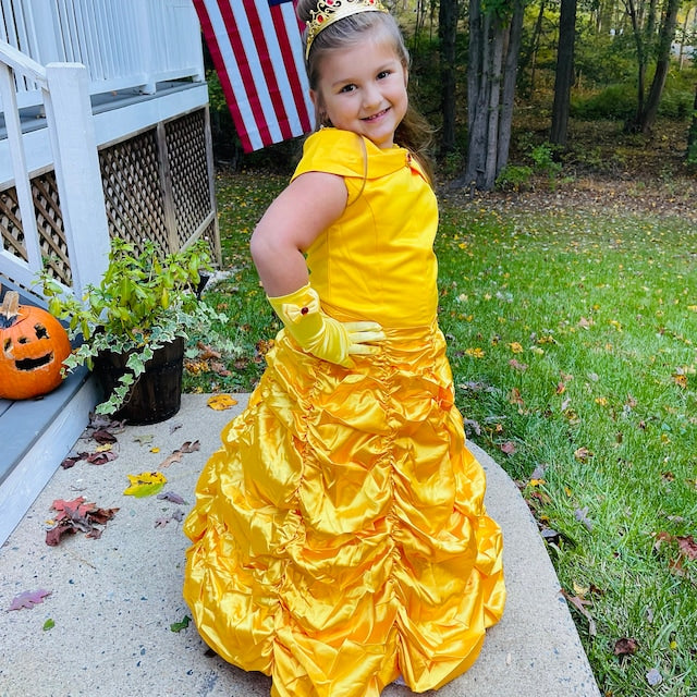 It is simple, but gorgeous and very classy. It is a full length gown, with a great amount of volume, but still comfortable to move and walk around in. Can be custom made in any color and up to size 8 years.