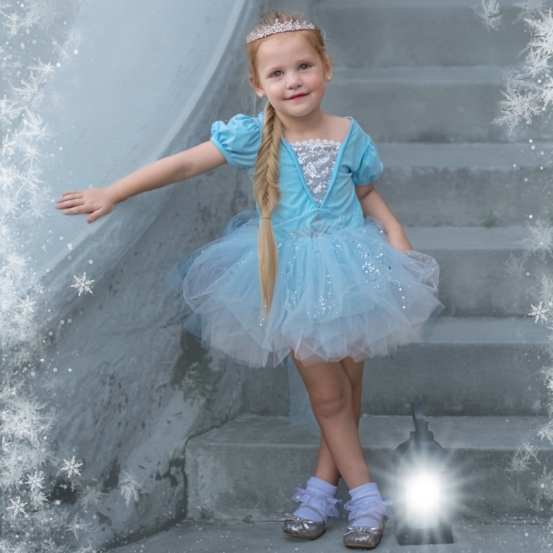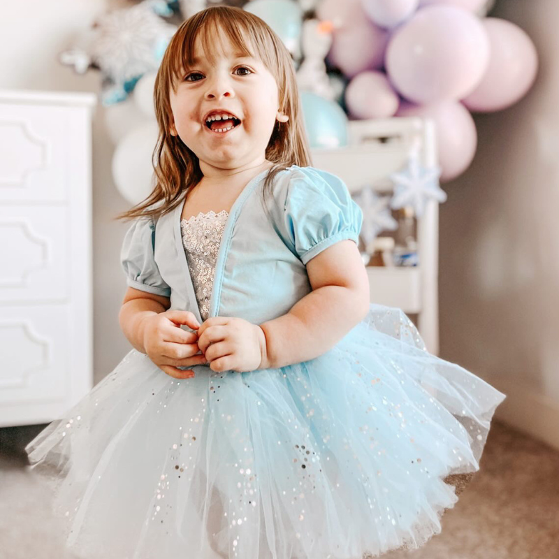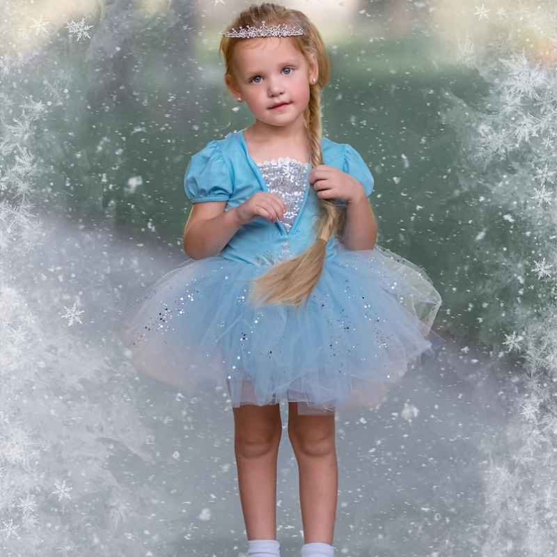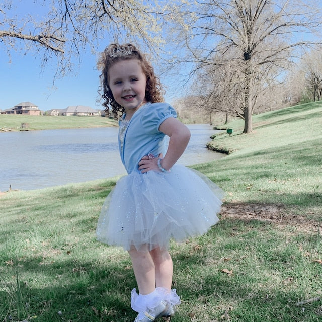 It is simple, but gorgeous and very classy. It is a full length gown, with a great amount of volume, but still comfortable to move and walk around in. Can be custom made in any color and up to size 8 years.