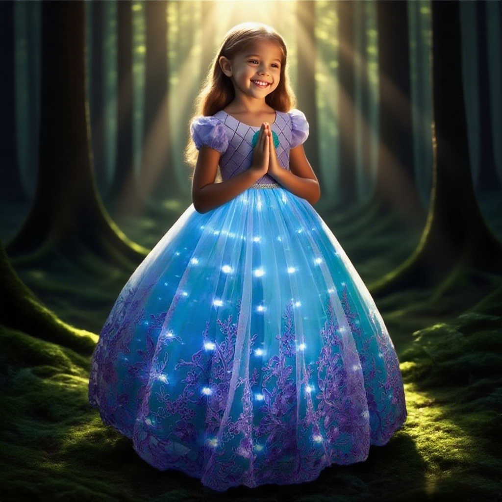 It is simple, but gorgeous and very classy. It is a full length gown, with a great amount of volume, but still comfortable to move and walk around in. Can be custom made in any color and up to size 10 years.