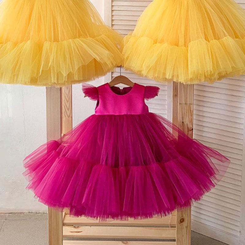 It is simple, but gorgeous and very classy. It is a full length gown, with a great amount of volume, but still comfortable to move and walk around in. Can be custom made in any color and up to size 6 years.