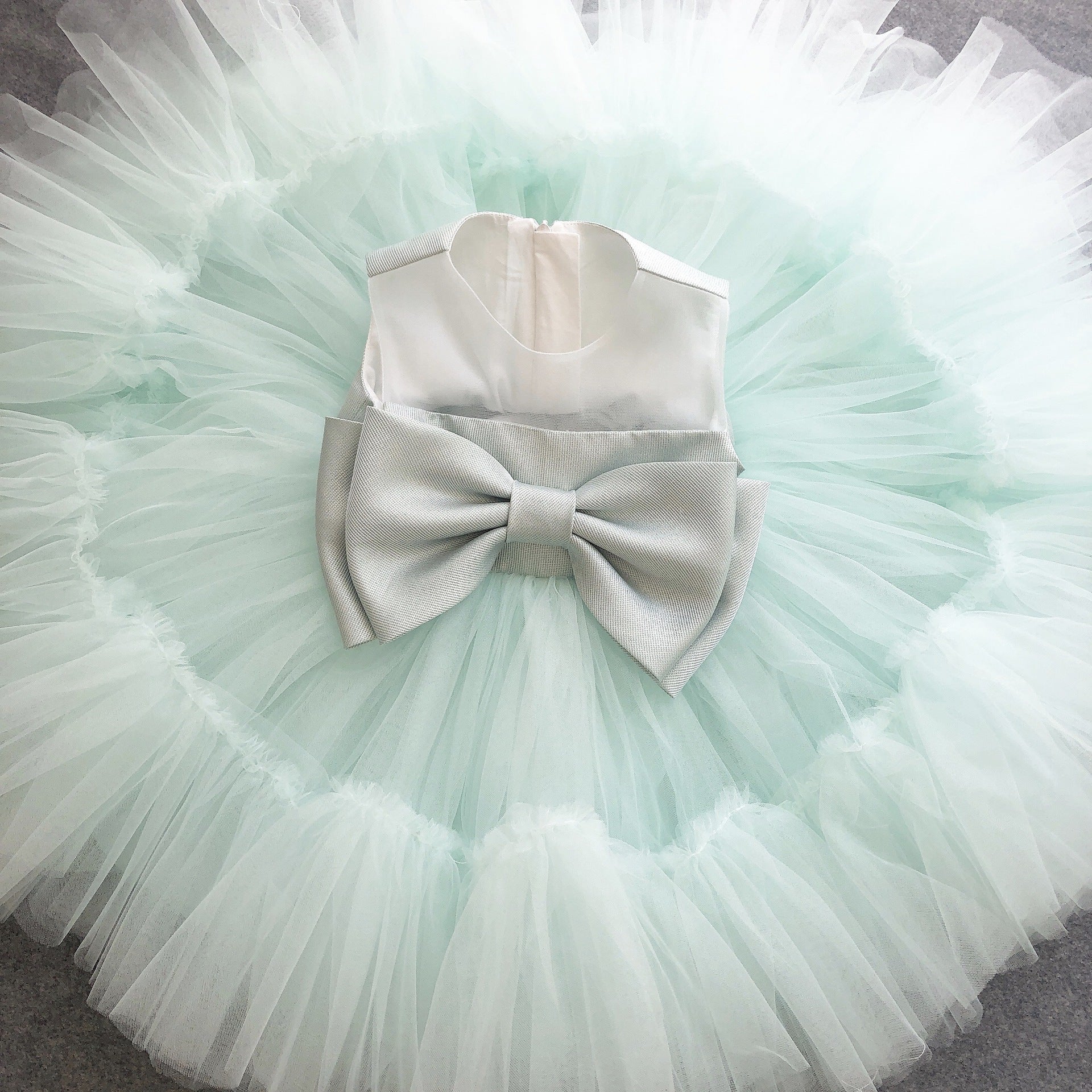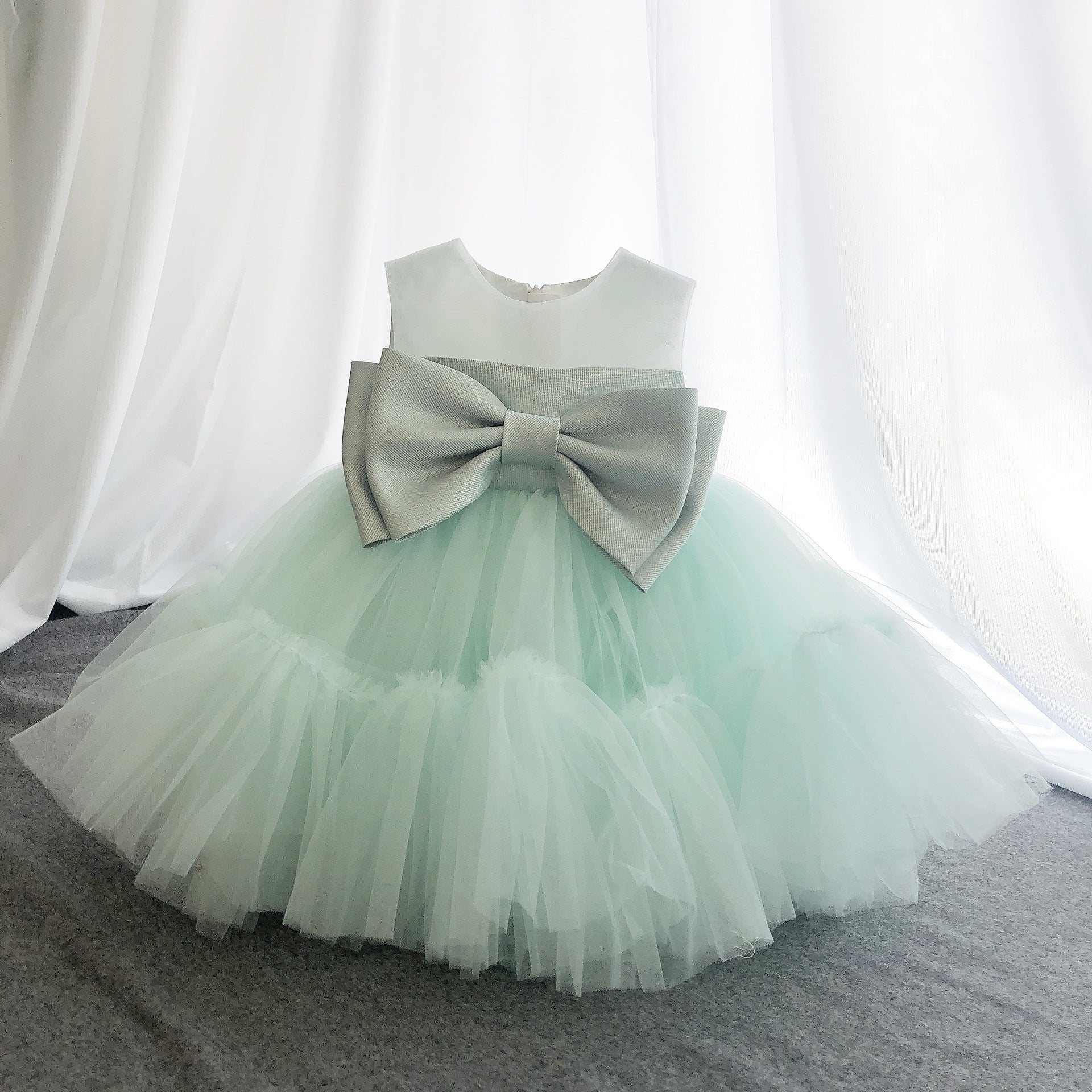 It is simple, but gorgeous and very classy. It is a full length gown, with a great amount of volume, but still comfortable to move and walk around in. Can be custom made in any color and up to size 10 years.