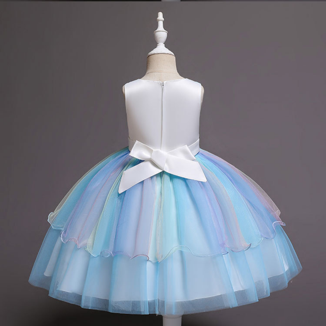 It is simple, but gorgeous and very classy. It is a full length gown, with a great amount of volume, but still comfortable to move and walk around in. Can be custom made in any color and up to size 10 years.