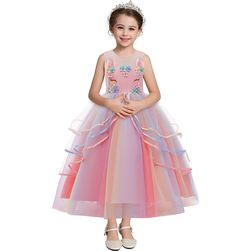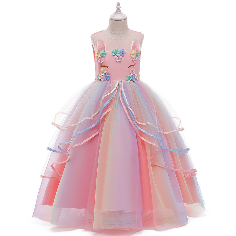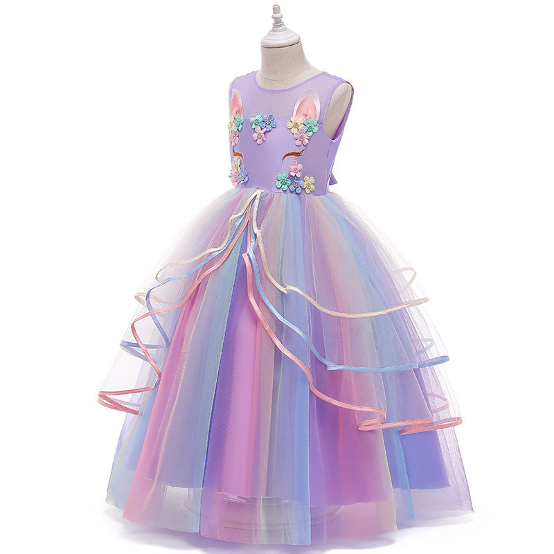 It is simple, but gorgeous and very classy. It is a full length gown, with a great amount of volume, but still comfortable to move and walk around in. Can be custom made in any color and up to size 10 years.