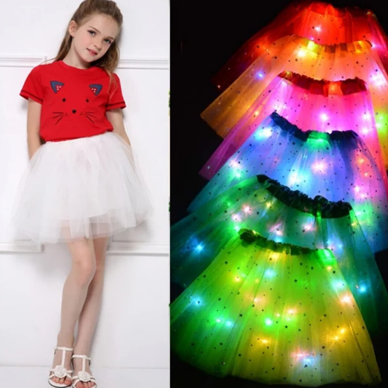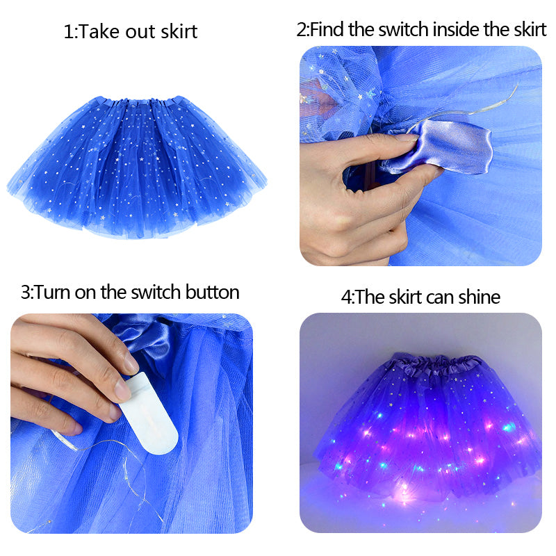 This vivid LED Tutu Skirt comes with string of light. The battery is included and it's located the waistband inside a plastic box with a on/off switch. It is recommended to wash by hand or dry cleaned so water does not reach the battery box.