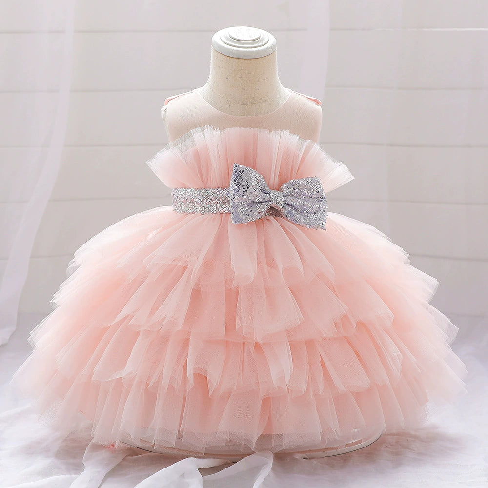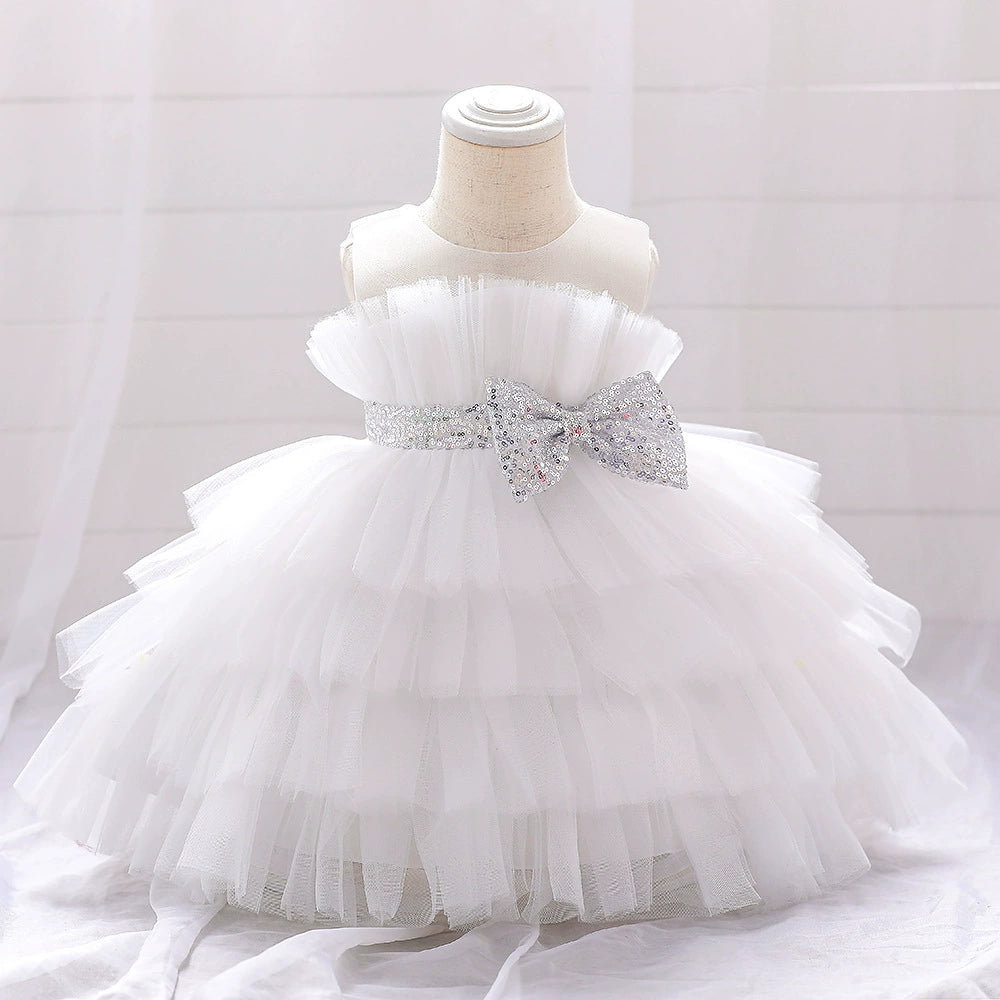 One of our best selling dresses for Flower Girls, Weddings, or any special event in general. We have found most parents love a classic, bow look, with light jewels and a lace overlay when it comes to the dresses they want for their flower girl.