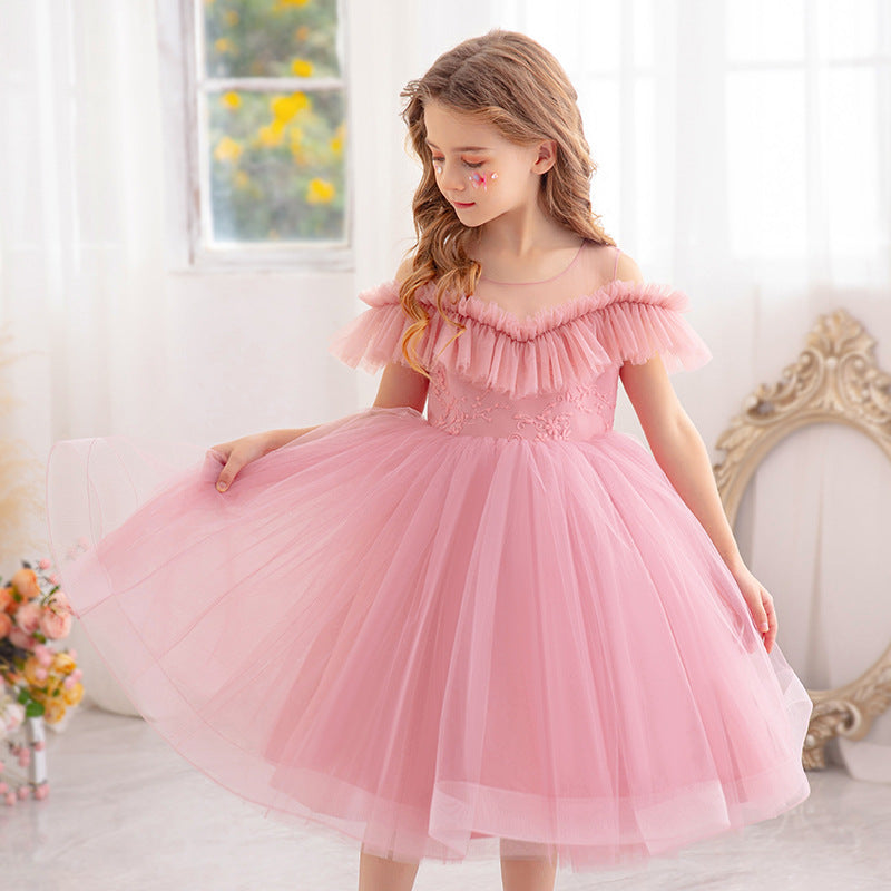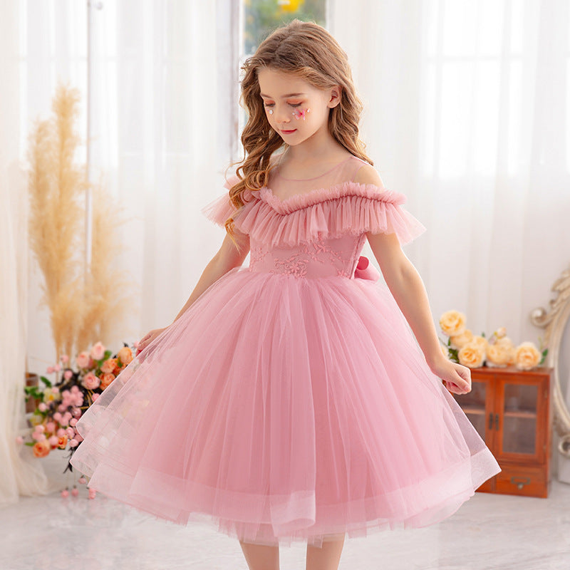 It is simple, but gorgeous and very classy. It is a full length gown, with a great amount of volume, but still comfortable to move and walk around in. Can be custom made in any color and up to size 8 years.