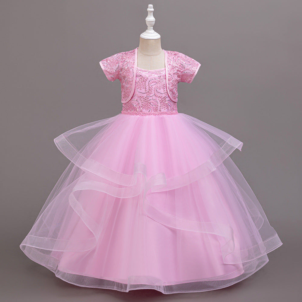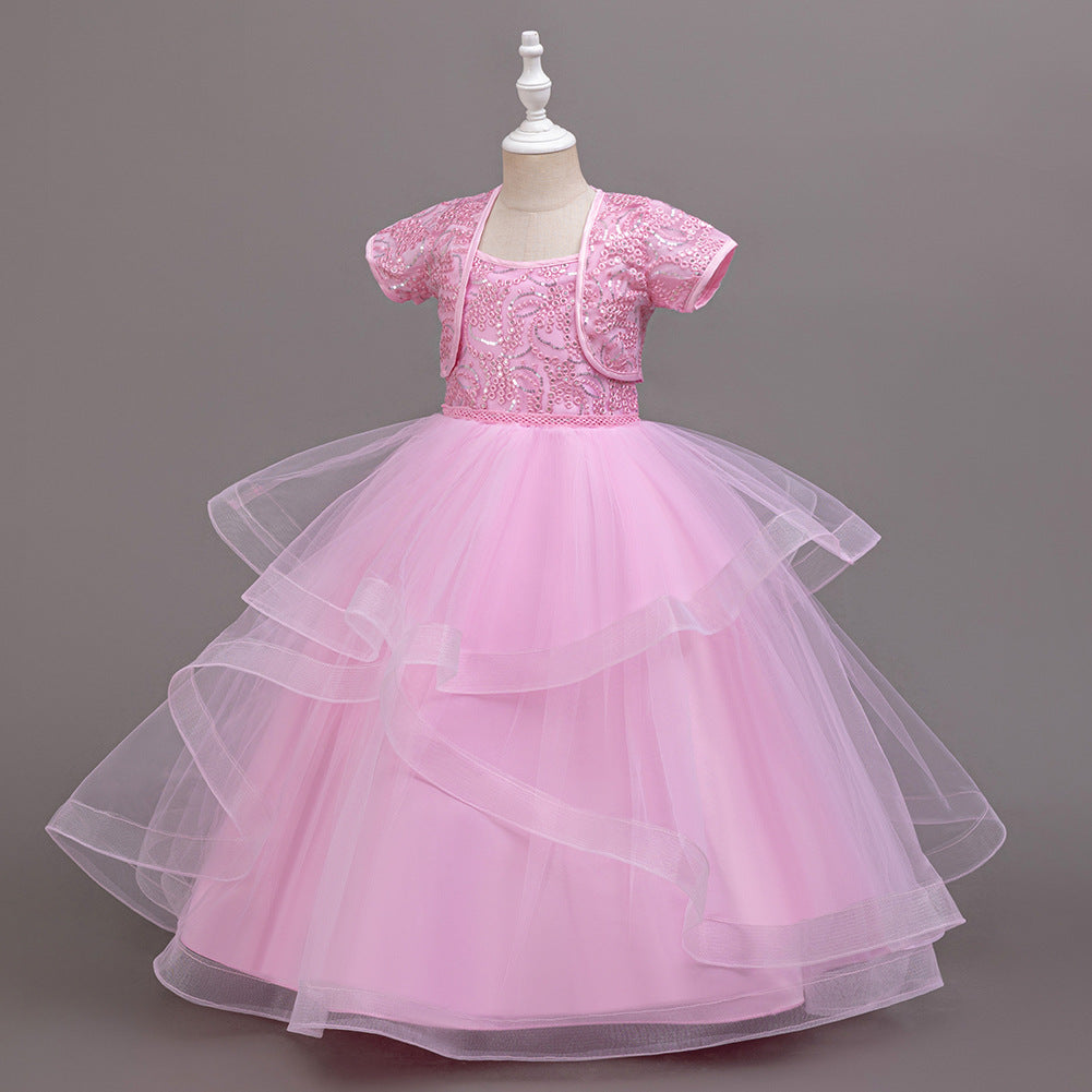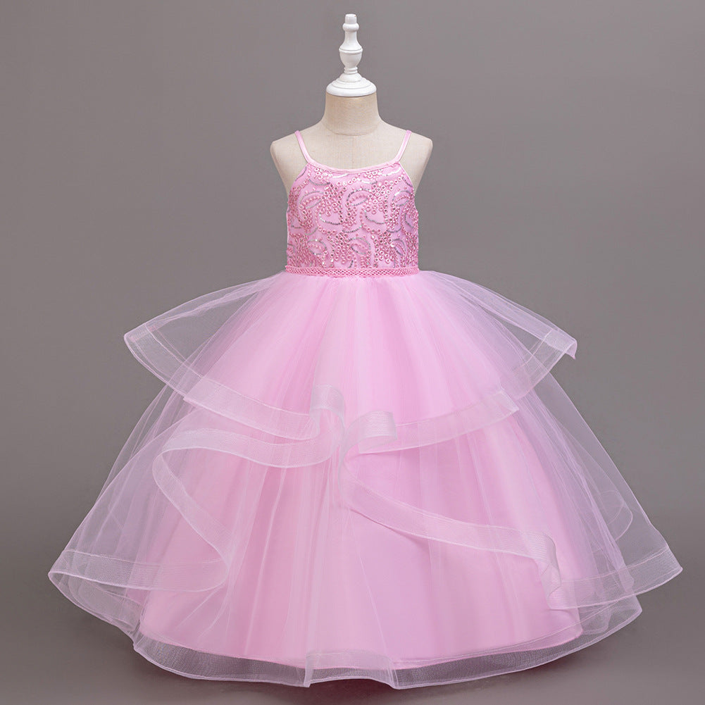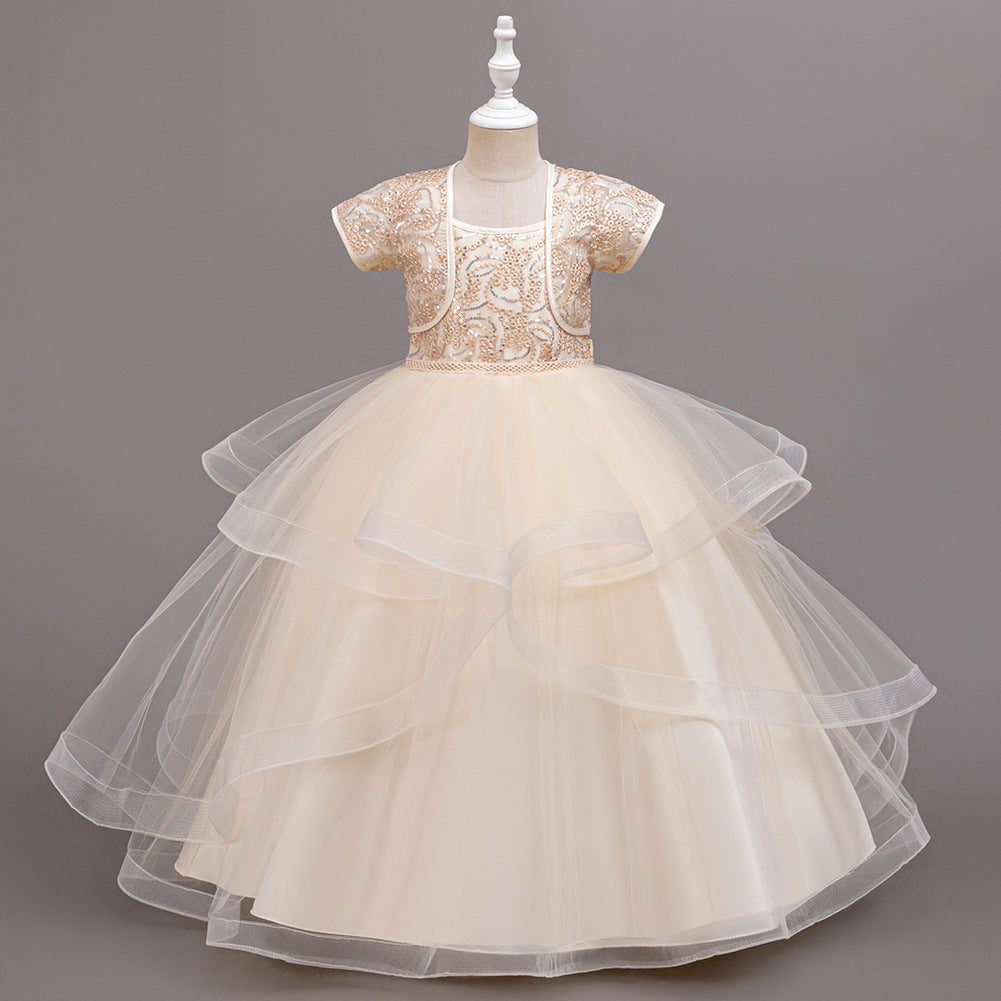 It is simple, but gorgeous and very classy. It is a full length gown, with a great amount of volume, but still comfortable to move and walk around in. Can be custom made in any color and up to size 8 years.