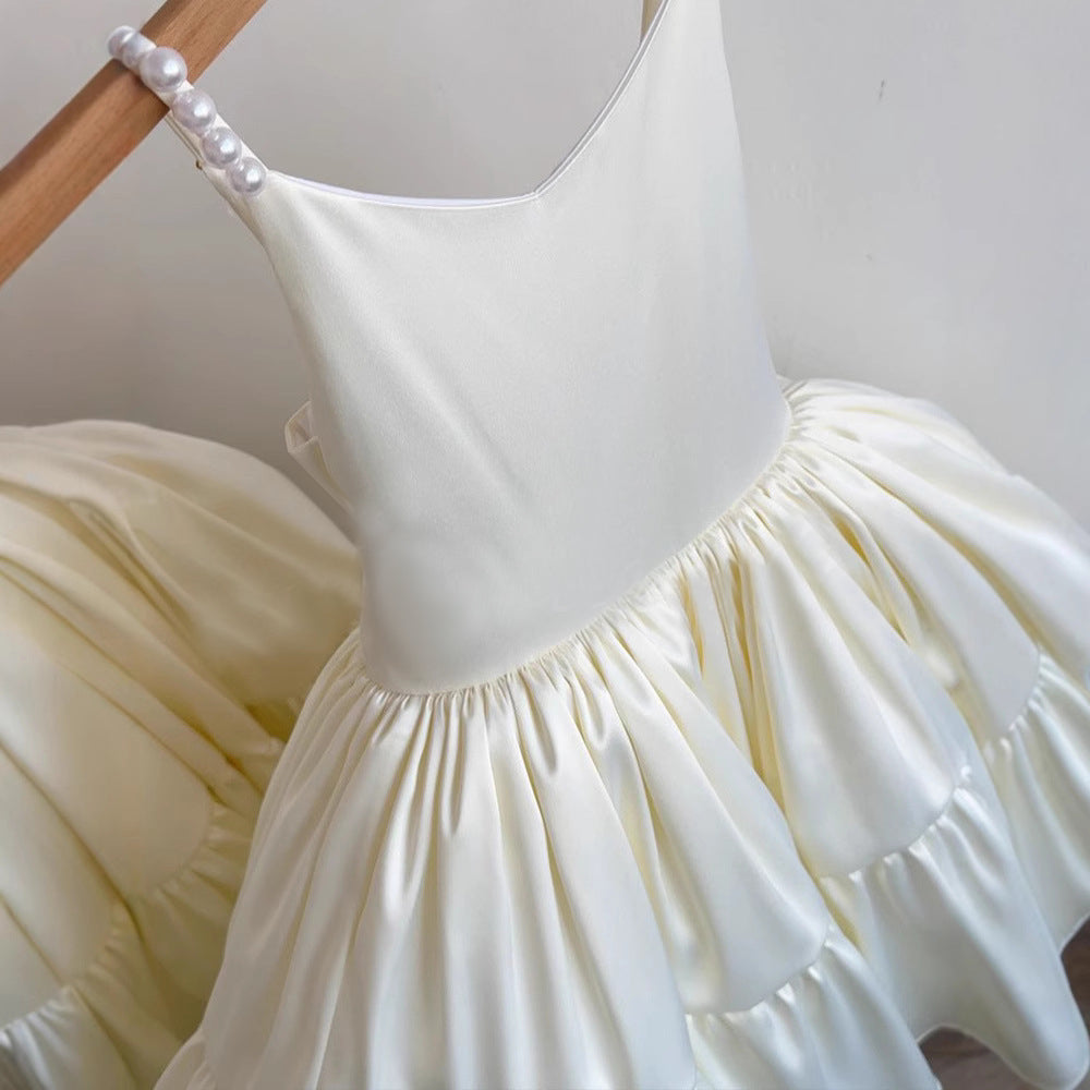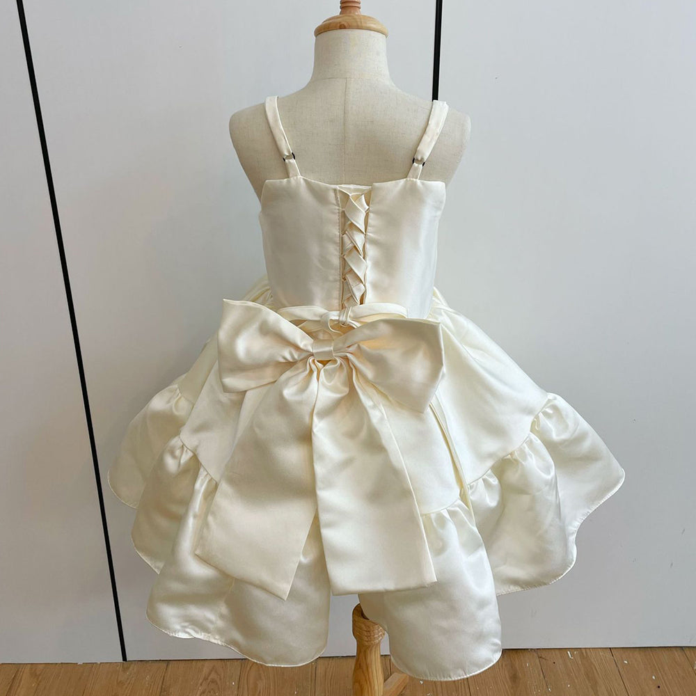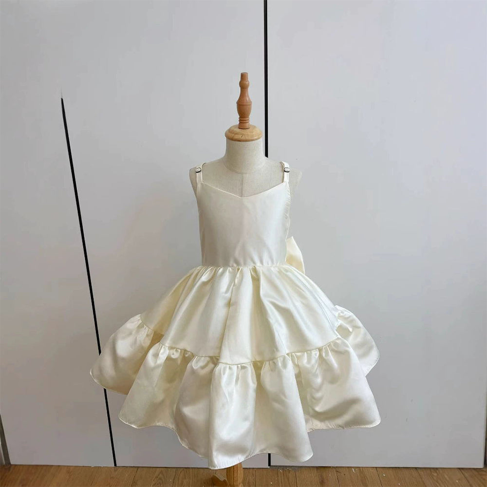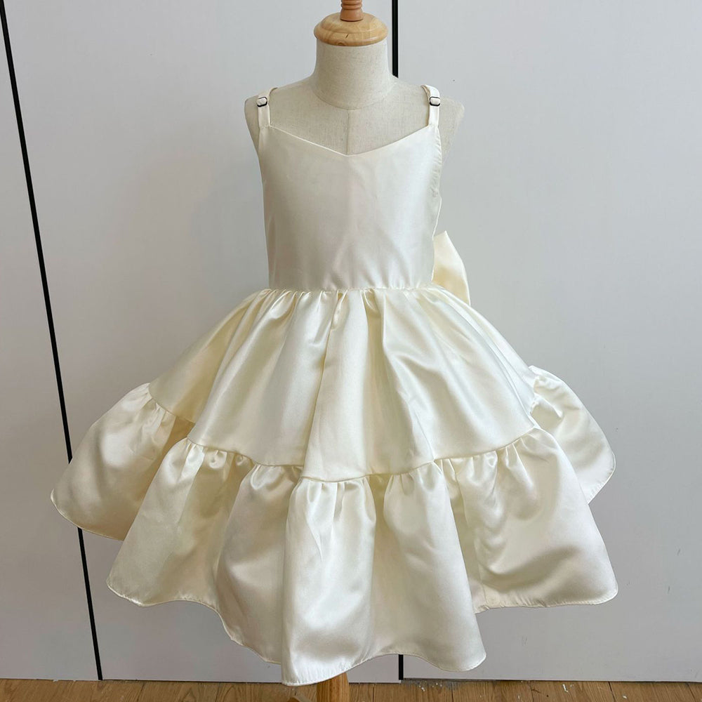 One of our best selling dresses for Flower Girls, Weddings, or any special event in general. We have found most parents love a classic, bow look, with light jewels and a lace overlay when it comes to the dresses they want for their flower girl.