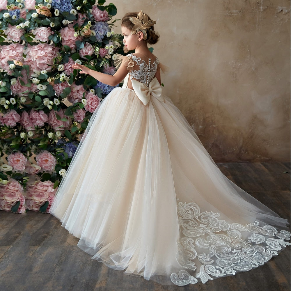 One of our best selling dresses for Flower Girls, Weddings, or any special event in general. We have found most parents love a classic, bow look, with light jewels and a lace overlay when it comes to the dresses they want for their flower girl.