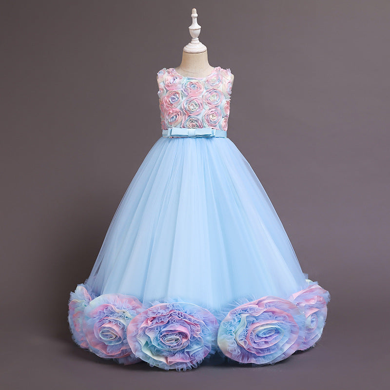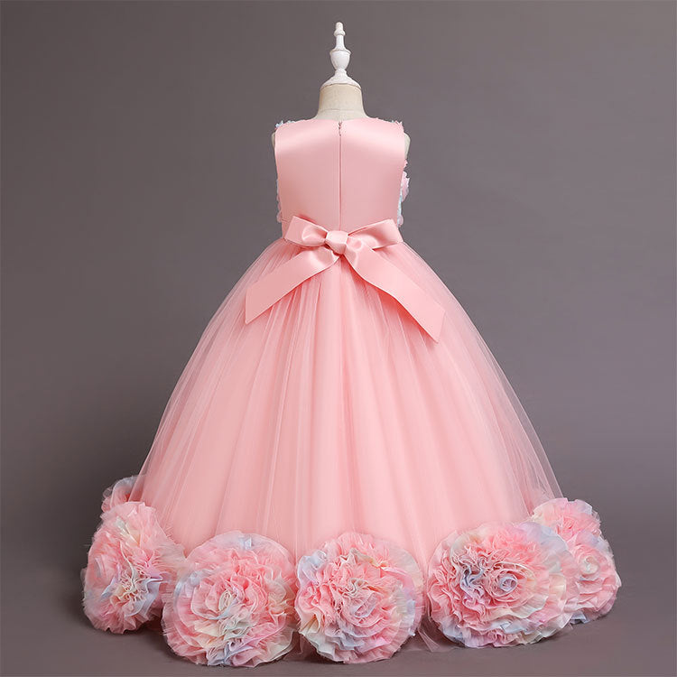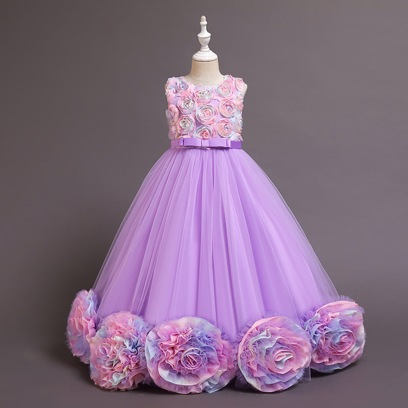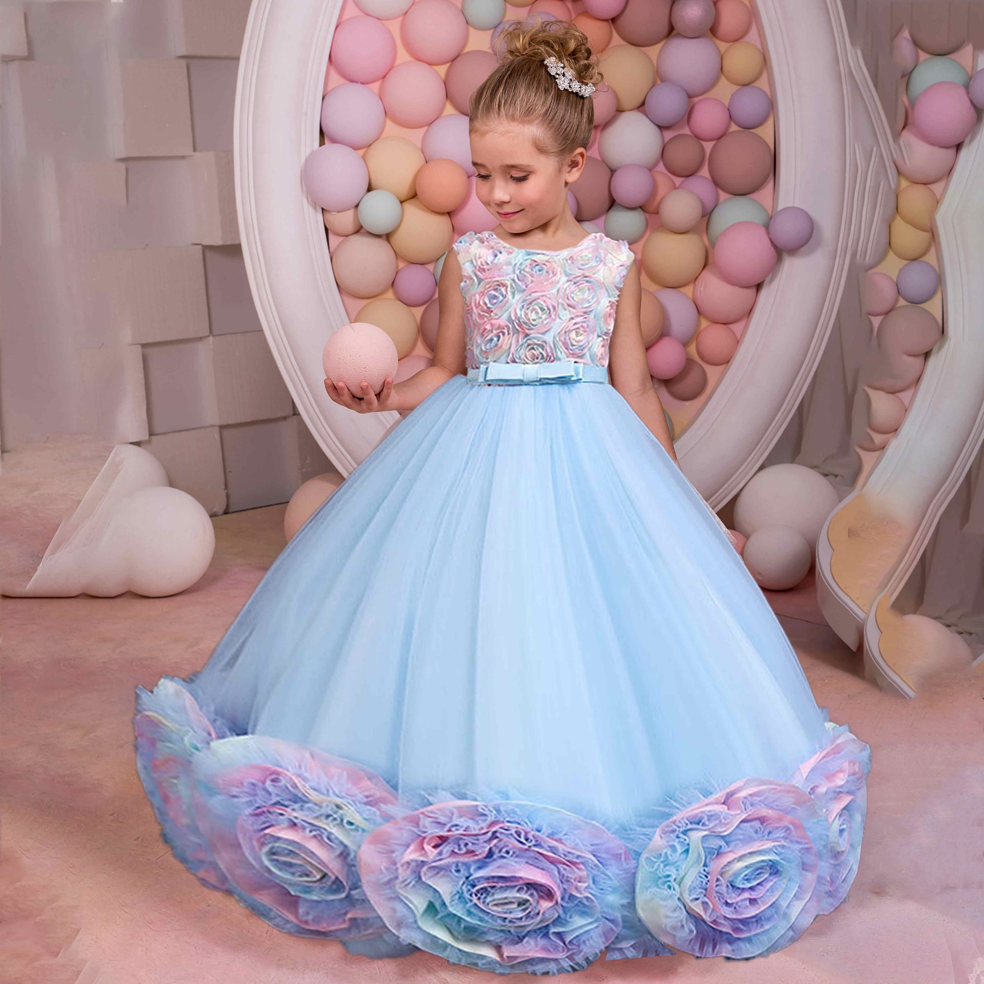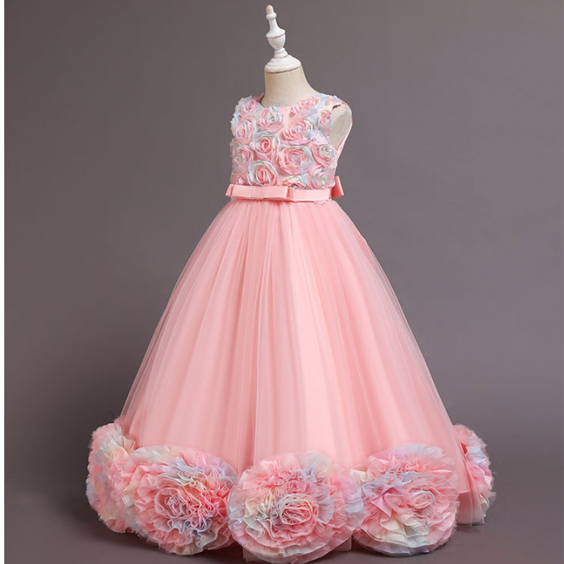 It is simple, but gorgeous and very classy. It is a full length gown, with a great amount of volume, but still comfortable to move and walk around in. Can be custom made in any color and up to size 12 years.