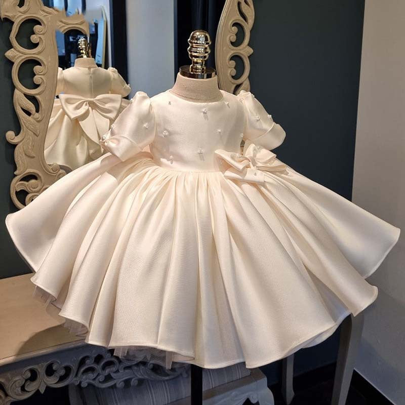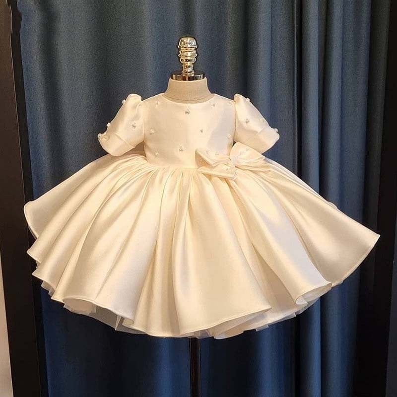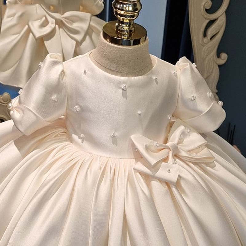 One of our best selling dresses for Flower Girls, Weddings, or any special event in general. We have found most parents love a classic, bow look, with light jewels and a lace overlay when it comes to the dresses they want for their flower girl.