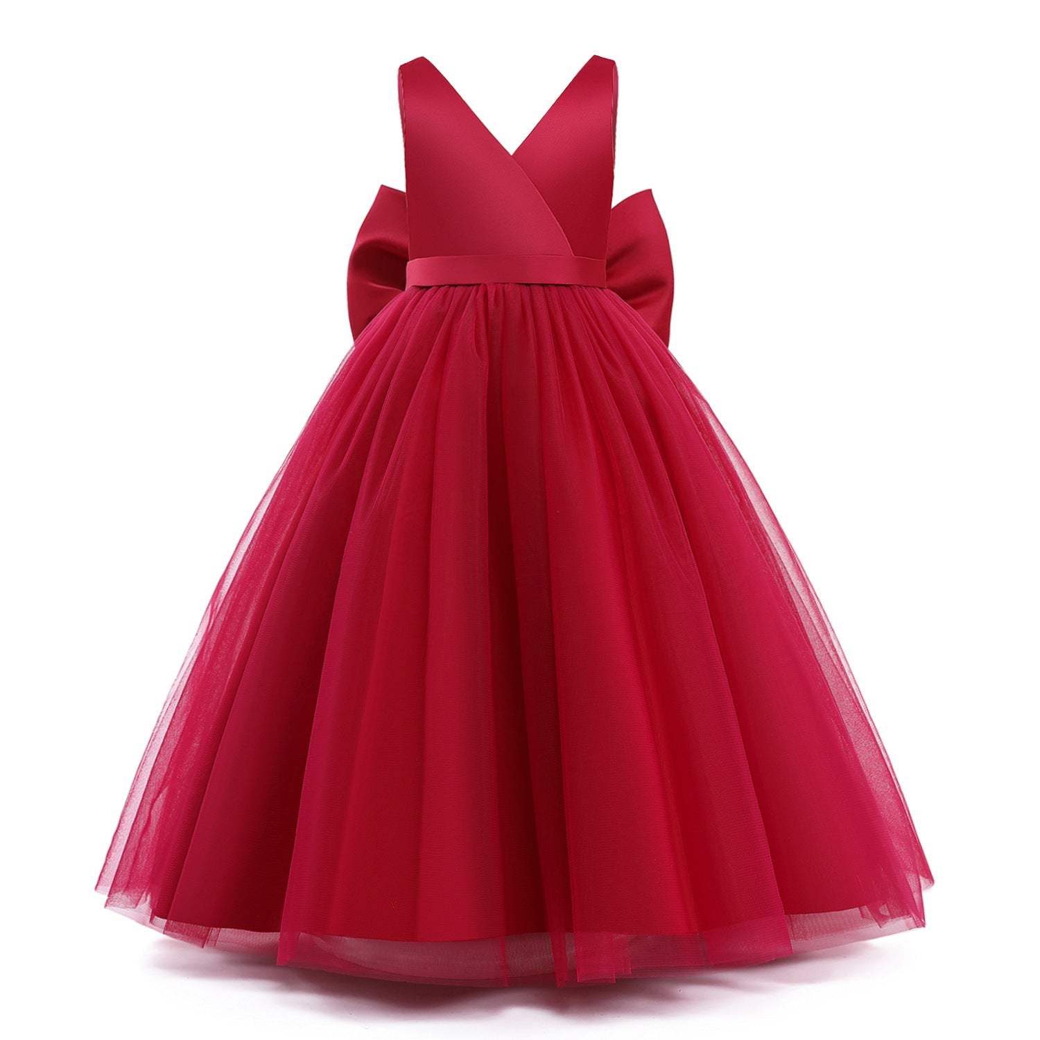 It is simple, but gorgeous and very classy. It is a full length gown, with a great amount of volume, but still comfortable to move and walk around in. Can be custom made in any color and up to size 10 years.