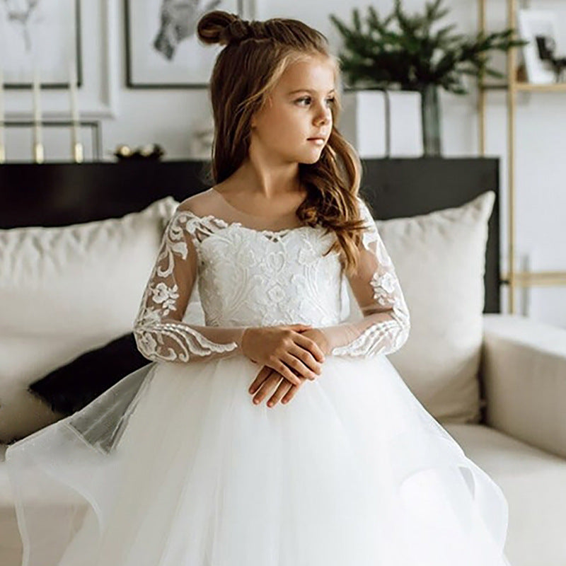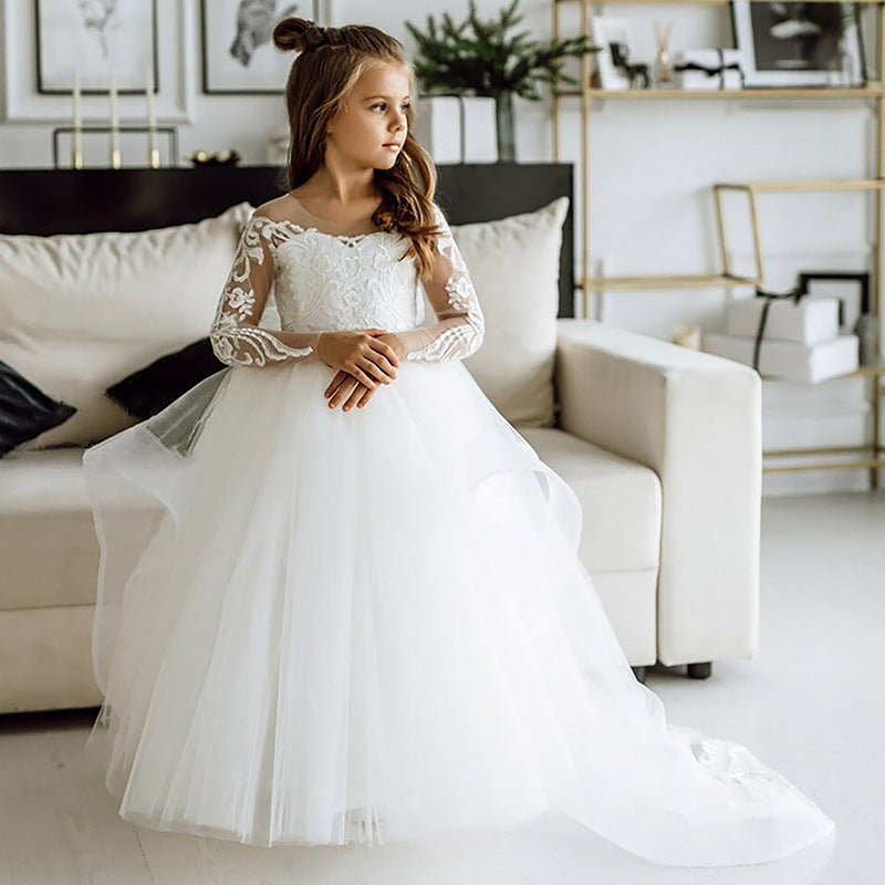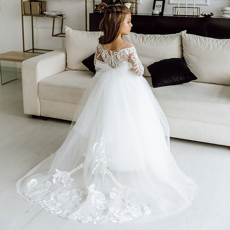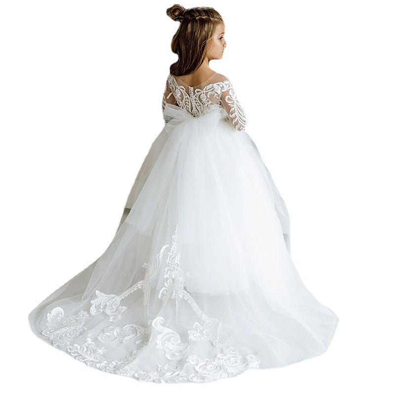 One of our best selling dresses for Flower Girls, Weddings, or any special event in general. We have found most parents love a classic, bow look, with light jewels and a lace overlay when it comes to the dresses they want for their flower girl.
